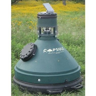 If you are tired of lugging cumbersome feed bags up a rickety ladder to fill your traditional feeder, consider the benefits of this low-maintenance Capsule Feeder. The Capsule Game Feeder's patented design is much more convenient than traditional feeders. Since it sits on the ground, you don't have to hassle with ladders and winches to refill it. Simply back up a truck to the feeder, drop the tailgate and fill it up. The unique auger system pulls feed upward and broadcasts it, so you have precise control over the feed volume. The programmable timer permits up to six feed times a day, dispersing 1.3 lbs. to 1.4 lbs. every five seconds. Comes with a heavy-duty 12-volt, 7-Ah rechargeable battery; 12-volt, 70mA solar panel; and a powerful 12-volt, 5.1-amp, permanent magnet DC motor. Made of UV-resistant, polyethylene plastic. 10-year manufacturer's warranty. Available: 500 lb., 1,000 lb.